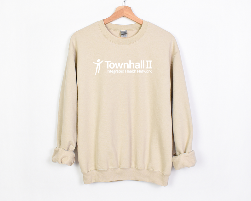 Get your Townhall II custom crewneck sweatshirt with the organization’s logo on the front. Super soft blend – warm fleece inside.